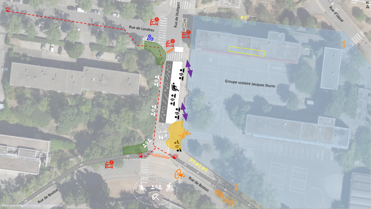 L’expérimentation d’aménagement de rues scolaires (réservées aux piétons et cyclistes, a minima aux heures d’entrée et sortie de l’école, voire totalement piétonnisées) a démarré à Strasbourg en 2022. À travers un dispositif méthodologique sur mesure croisant approches qualitatives et quantitatives, notre mission a consisté à évaluer 6 rues scolaires en interrogeant une diversité de profils d’usagers (riverains, parents, enseignants, cyclistes, PMR, etc.) et en tenant compte de différents enjeux (sécurité, usages et appropriation des aménagements, pratiques de mobilité, autonomie des trajets domicile-école, impacts sur les quartiers environnants, etc.).